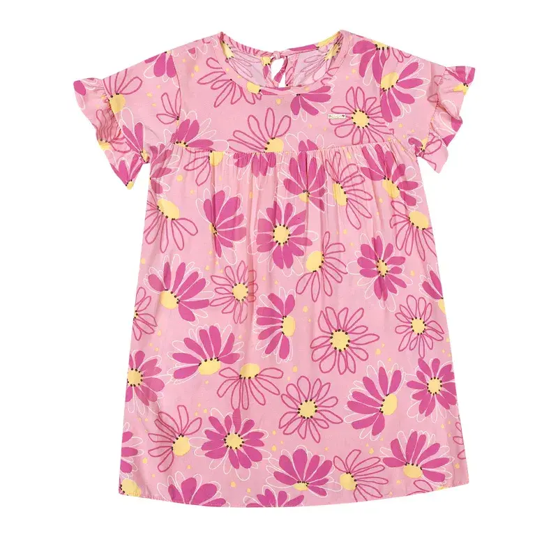 Vestido Elian Rosa Viscose com Flores - Tamanho 1